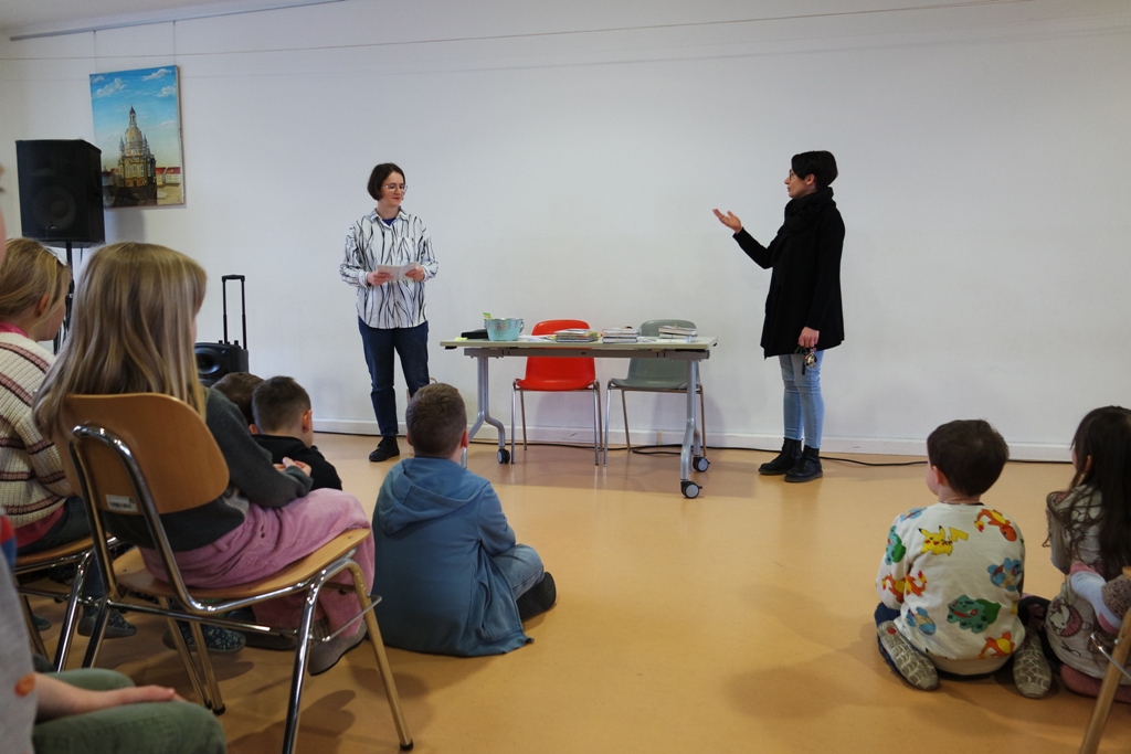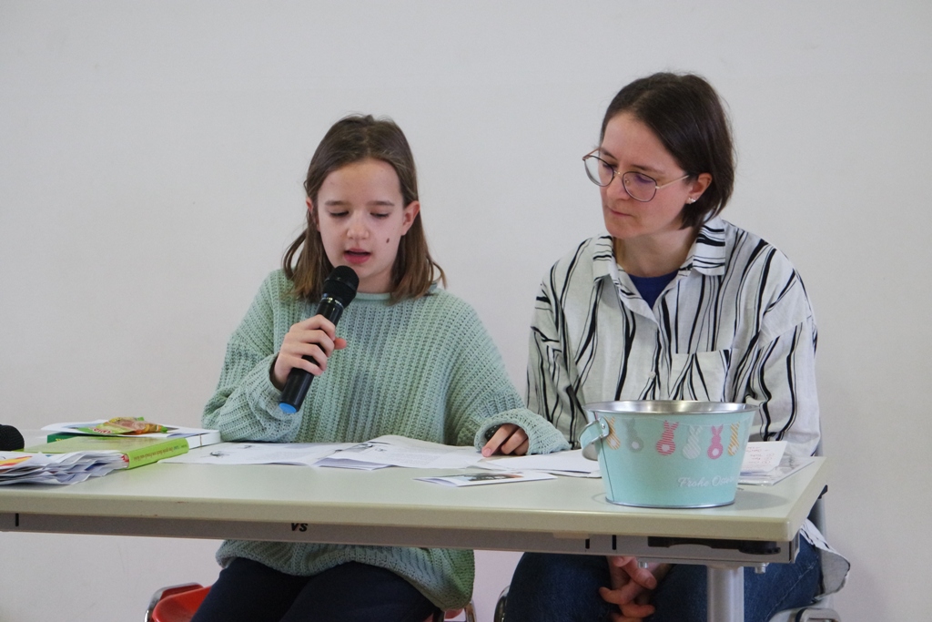 Am 1. April fand nun die Siegerehrung vor der gesamten Schule statt. Die drei Besten einer Klassenstufe erhielten einen Buchpreis und durften dann vor allen Kindern ihr Können zeigen und ein Stück vorlesen.